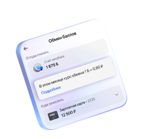 Курс обмена бонусных баллов на вознаграждение (рубли), определяется исходя из уровня клиента, рассчитанного на 1 число текущего месяца на основе среднемесячного остатка за предыдущий отчетный период. Минимальный порог конвертации — 500 бонусных баллов |