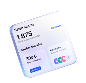 Максимальное вознаграждение в месяц зависит от уровня и наличия подключенного сервиса Газпром Бонус «Плюс»/ «Премиум». С информацией о размере и балансе бонусных баллов можно ознакомиться в интернет-банке, мобильном приложении или при обращении в контакт-центр банка после аутентификации. |