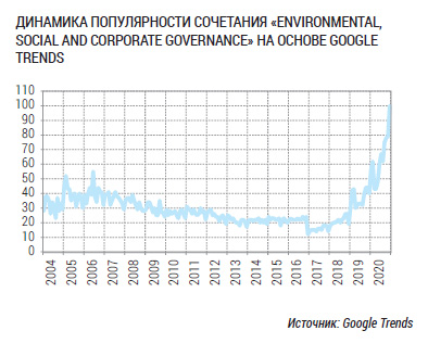 Это значит, что с этого года решения об инвестировании средств объемом более $50 трлн (половина от $103 трлн) должны осуществляться с учетом ESG. Это в том числе объясняет ажиотаж, который можно наблюдать в отношении ESG в этом году.