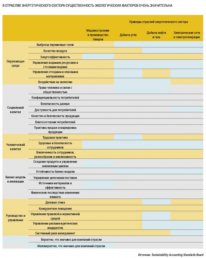 Как видно из таблицы, для энергетических отраслей существенность экологических целей значительно выше. Поэтому инвесторы с фокусом на ESG предъявляют повышенное внимание экологической составляющей, когда задумываются над инвестированием в энергетический сектор.