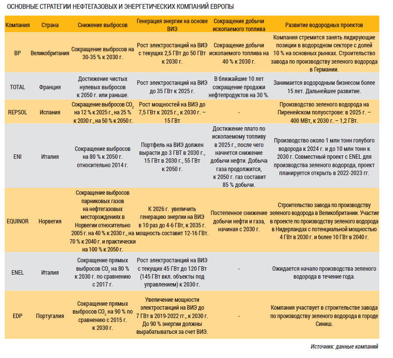 ОСНОВНЫЕ СТРАТЕГИИ НЕФТЕГАЗОВЫХ И ЭНЕРГЕТИЧЕСКИХ КОМПАНИЙ ЕВРОПЫ
