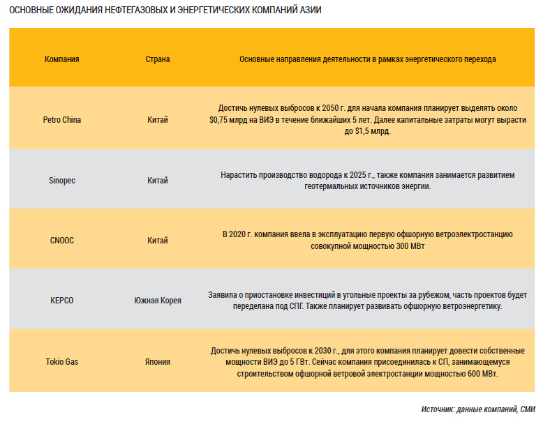 ОСНОВНЫЕ ОЖИДАНИЯ НЕФТЕГАЗОВЫХ И ЭНЕРГЕТИЧЕСКИХ КОМПАНИЙ АЗИИ